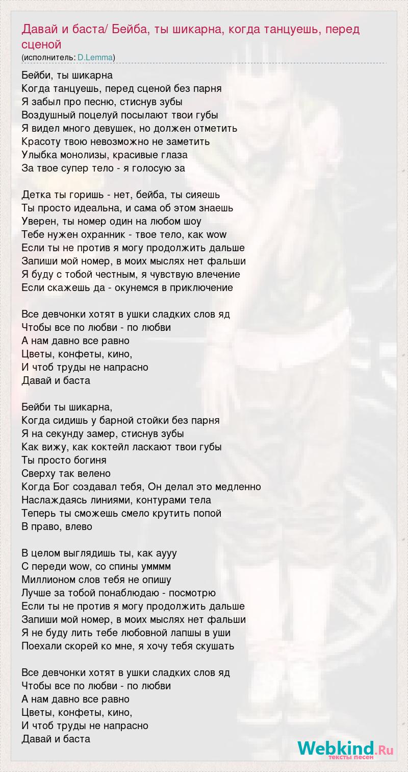 Главная→Исполнители→D.Lemma→Давай и баста/ Бейба, ты шикарна, когда танцуешь, перед сценой без парня Я забыл