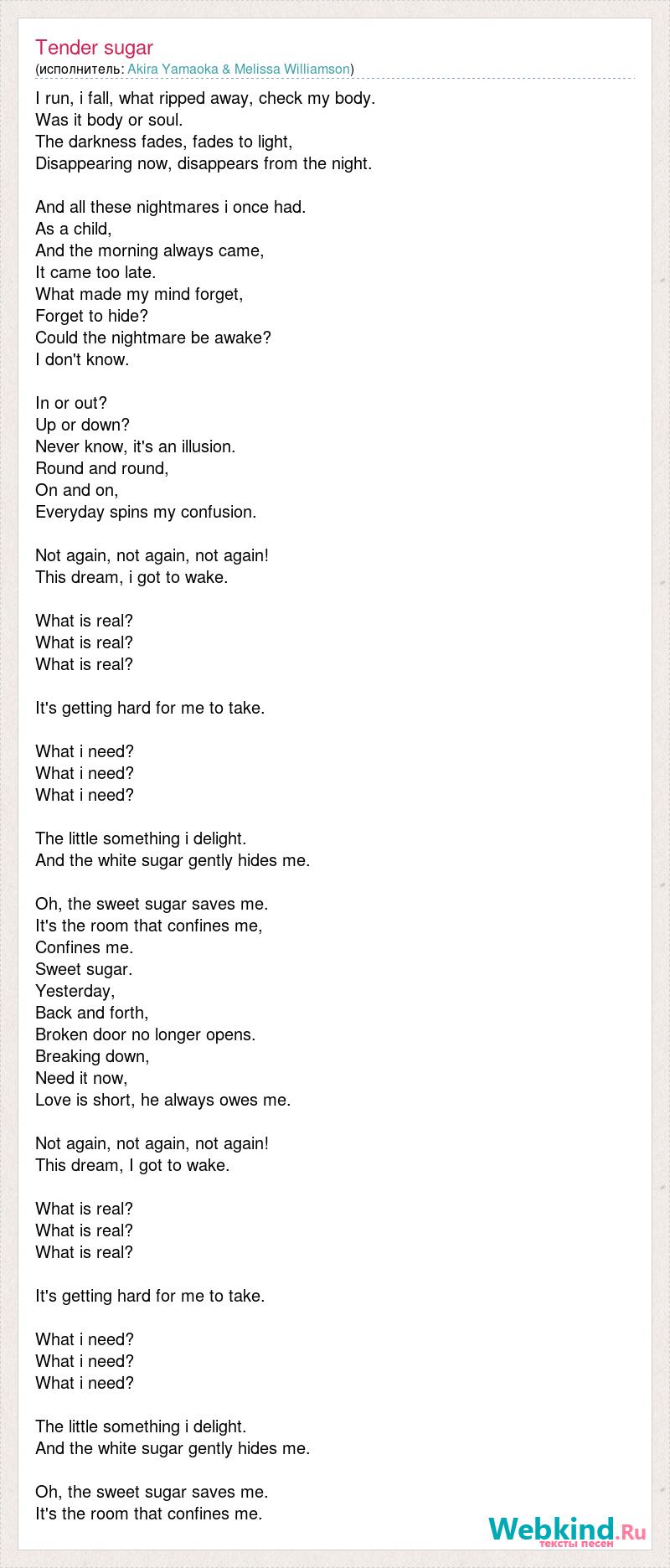 А как ты думаешь, о чем песня "Tender sugar" ?