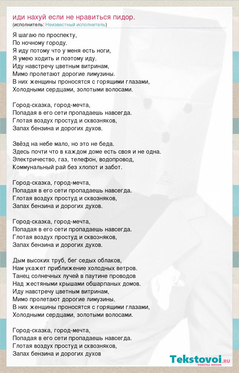 А как ты думаешь, о чем песня "Иди нахуй если не нравиться пидор." ?