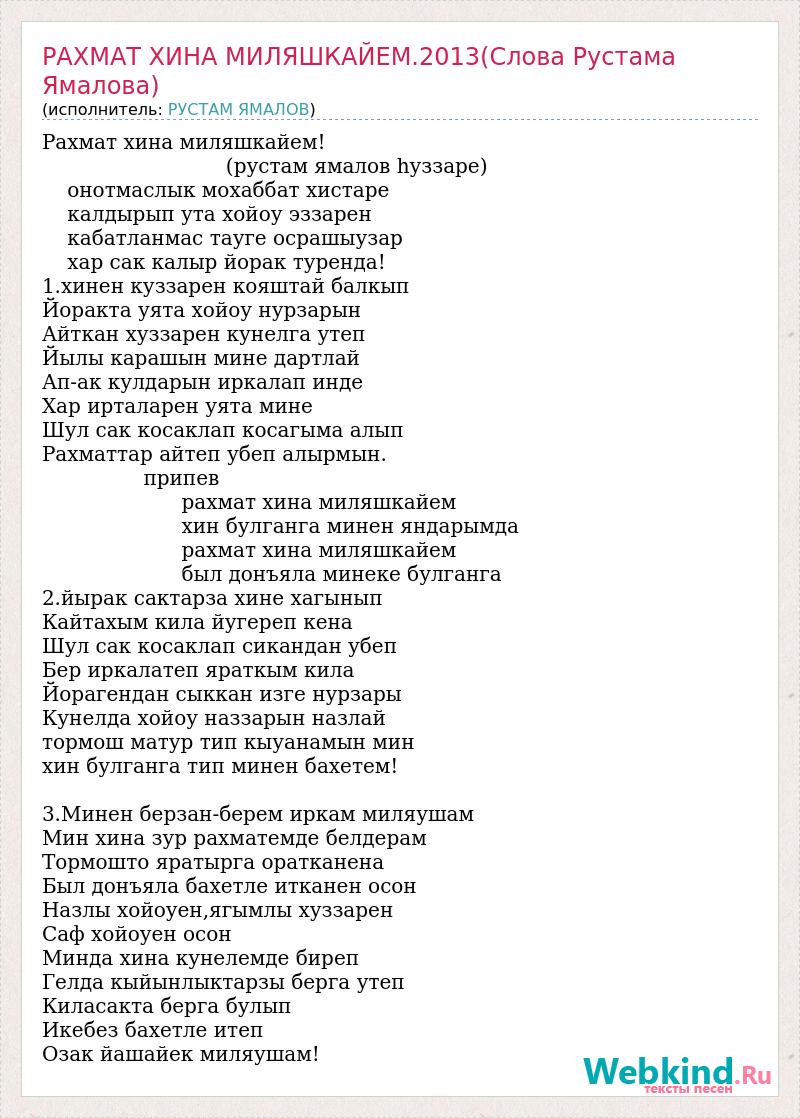 РАХМАТ ХИНА МИЛЯШКАЙЕМ.2013(Слова Рустама Ямалова)