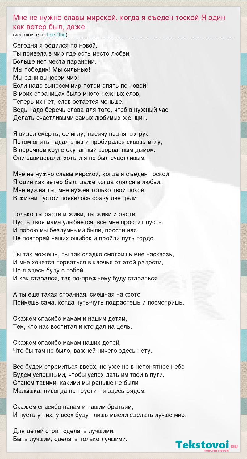 Мне не нужно славы мирской, когда я съеден тоской Я один как ветер был, даже