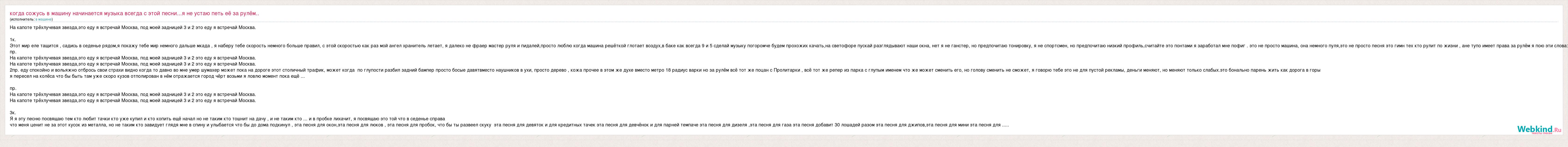 А как ты думаешь, о чем песня "Когда сожусь в машину начинается музыка всегда с этой песни...я не устаю " ?