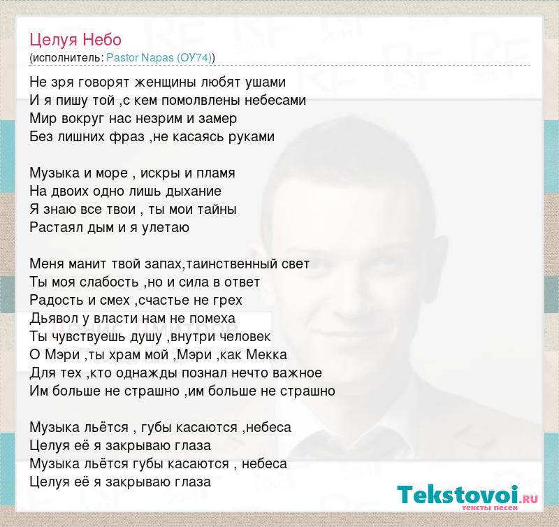 Не зря говорят женщины любят ушами И я пишу той ,с кем помолвлены небесами Мир вокруг нас незрим и замер Без лишних фраз ,не касаясь руками Музыка и море , искры и пламя На двоих одно лишь дыхание Я знаю все твои , ты мои тайны Растаял дым и я улетаю Меня манит твой запах,таинственный свет Ты моя слабость ,но и сила в ответ Радость и смех ,счастье не грех Дьявол у власти нам не помеха Ты чувствуешь душу ,внутри человек О Мэри ,ты храм мой ,Мэри ,как Мекка Для тех ,кто однажды познал нечто важное Им больше не страшно ,им больше не страшно Музыка льётся , губы касаются ,небеса Целуя её я закрываю глаза Музыка льётся губы касаются , небеса Целуя её я закрываю глаза