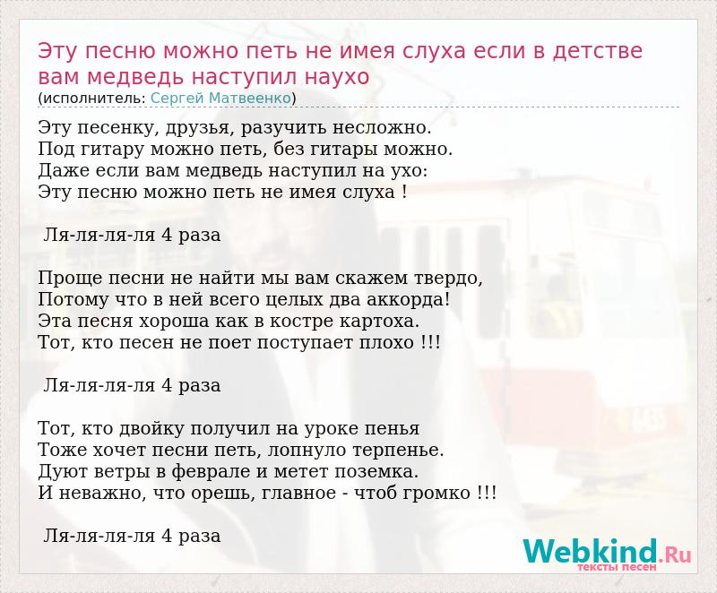 Эту песню можно петь не имея слуха если в детстве вам медведь наступил