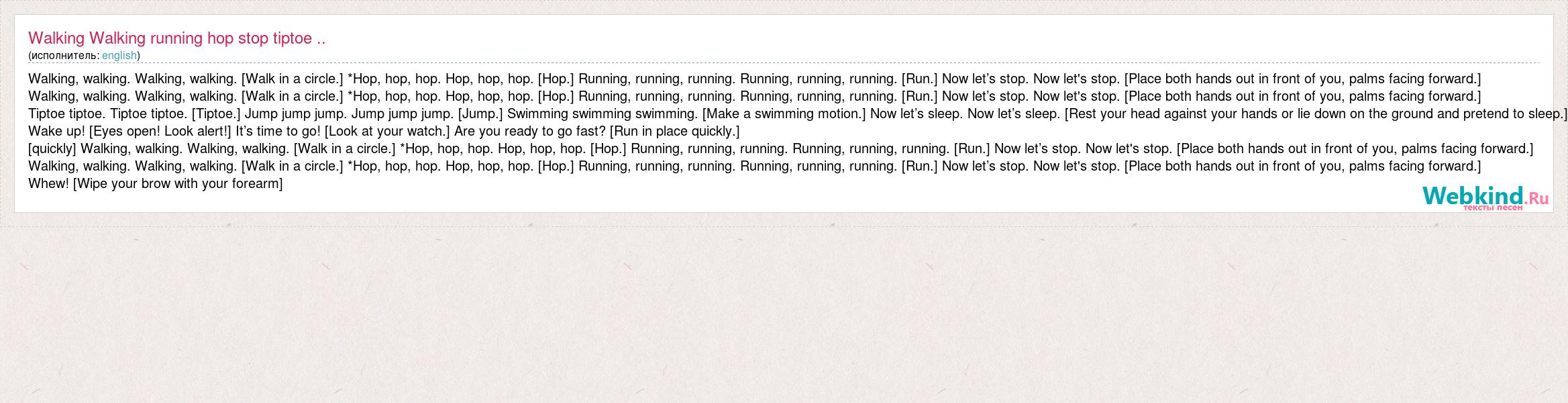 А как ты думаешь, о чем песня "Walking Walking running hop stop tiptoe .." ?
