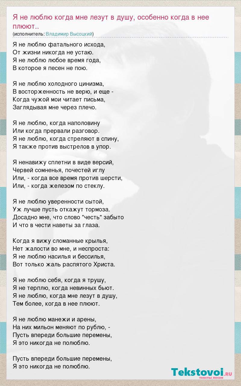 А как ты думаешь, о чем песня "Я не люблю когда мне лезут в душу, особенно когда в нее плюют.." ?