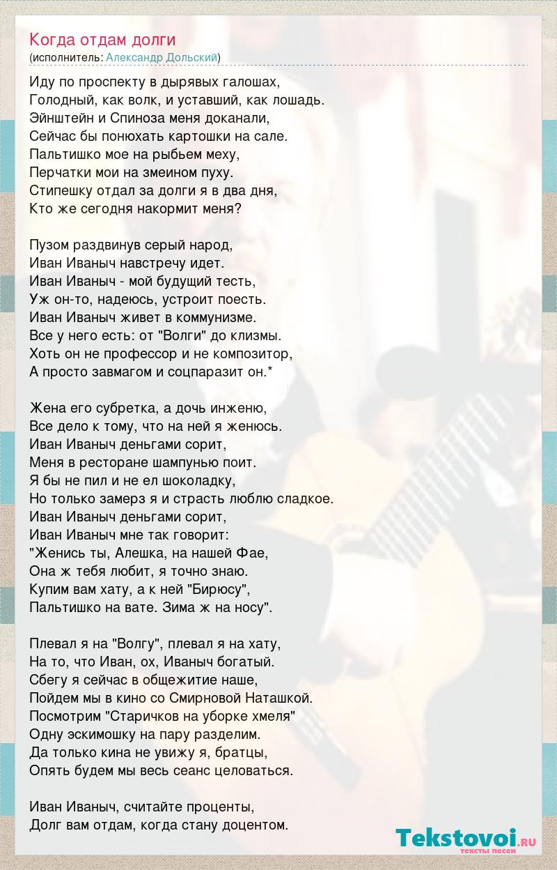 А как ты думаешь, о чем песня "Когда отдам долги" ?