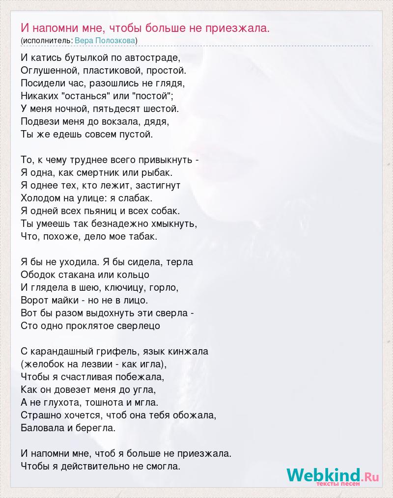 А как ты думаешь, о чем песня "И напомни мне, чтобы больше не приезжала." ?