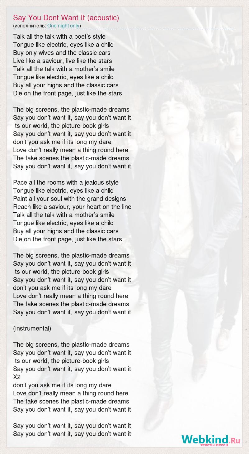 А как ты думаешь, о чем песня "Say You Dont Want It (acoustic)" ?