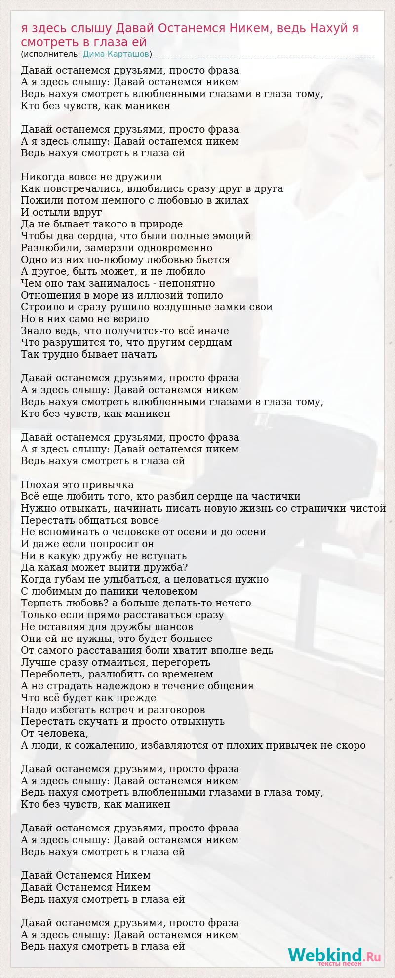 Главная→Исполнители→Дима Карташов→Я здесь слышу Давай Останемся Никем, ведь Нахуй я смотреть в глаза ей