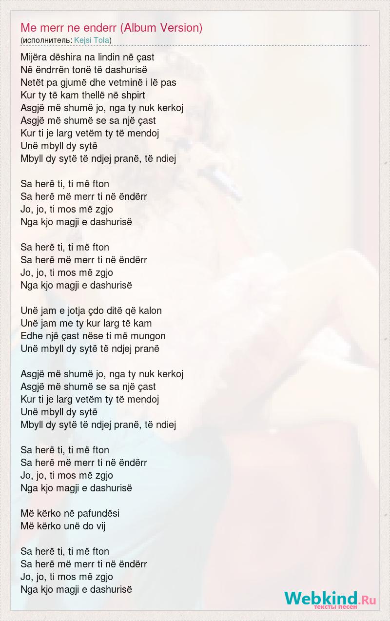 А как ты думаешь, о чем песня "Me merr ne enderr (Album Version)" ?