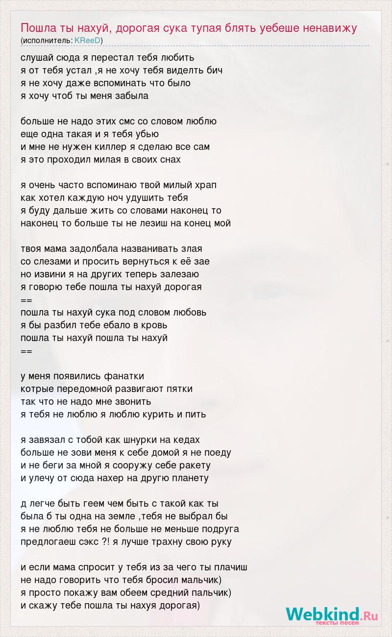 А как ты думаешь, о чем песня "Пошла ты нахуй, дорогая сука тупая блять уебеше ненавижу" ?