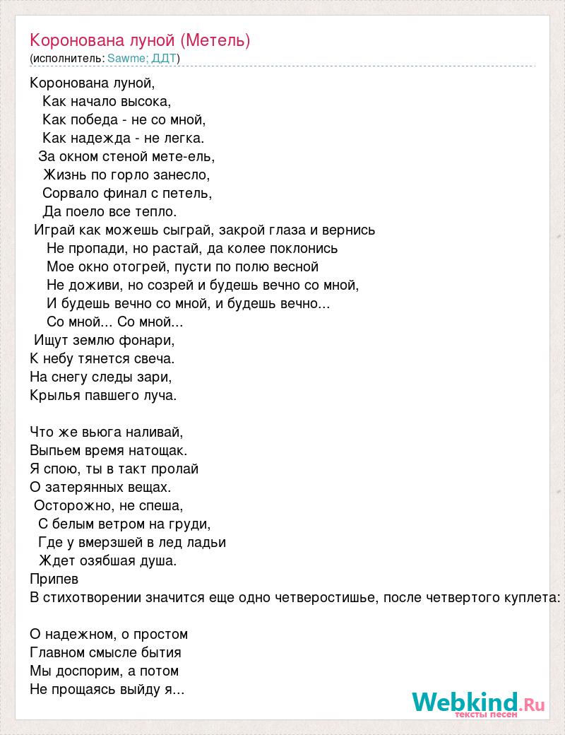 А как ты думаешь, о чем песня "Коронована луной (Метель)" ?