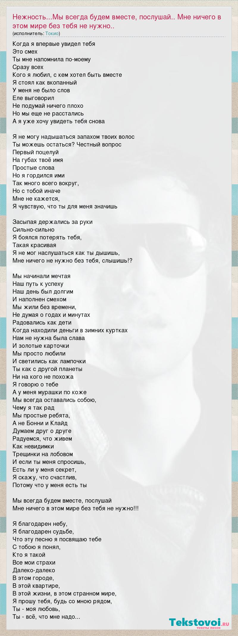 Главная→Исполнители→Токио→Нежность...Мы всегда будем вместе, послушай.. Мне ничего в этом мире без тебя не