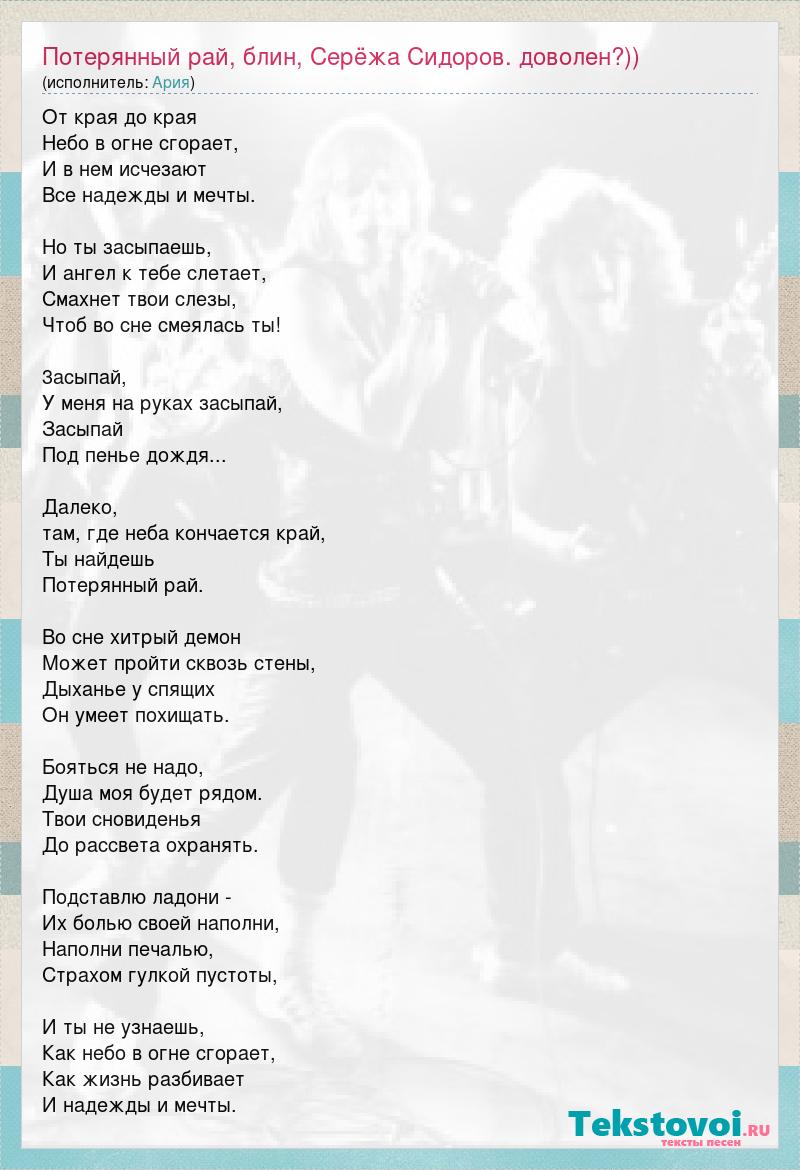 А как ты думаешь, о чем песня "Потерянный рай, блин, Серёжа Сидоров. доволен?))" ?
