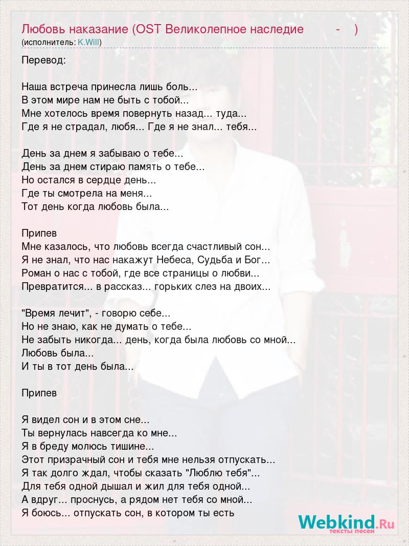 Любовь наказание (OST Великолепное наследие 사랑은 벌이다 - 케이윌)