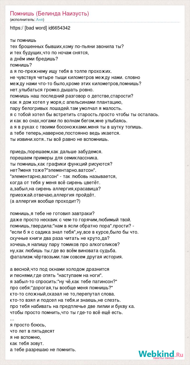 А как ты думаешь, о чем песня "Помнишь (Белинда Наизусть)" ?