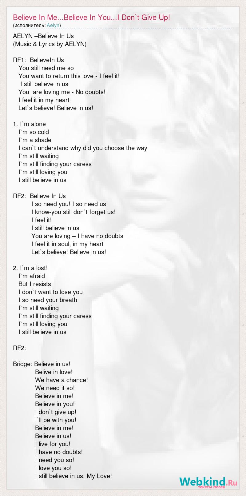 А как ты думаешь, о чем песня "Believe In Me...Believe In You...I Don`t Give Up!" ?