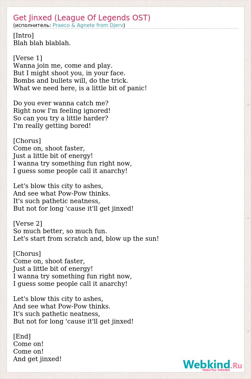 А как ты думаешь, о чем песня "Get Jinxed (League Of Legends OST)" ?