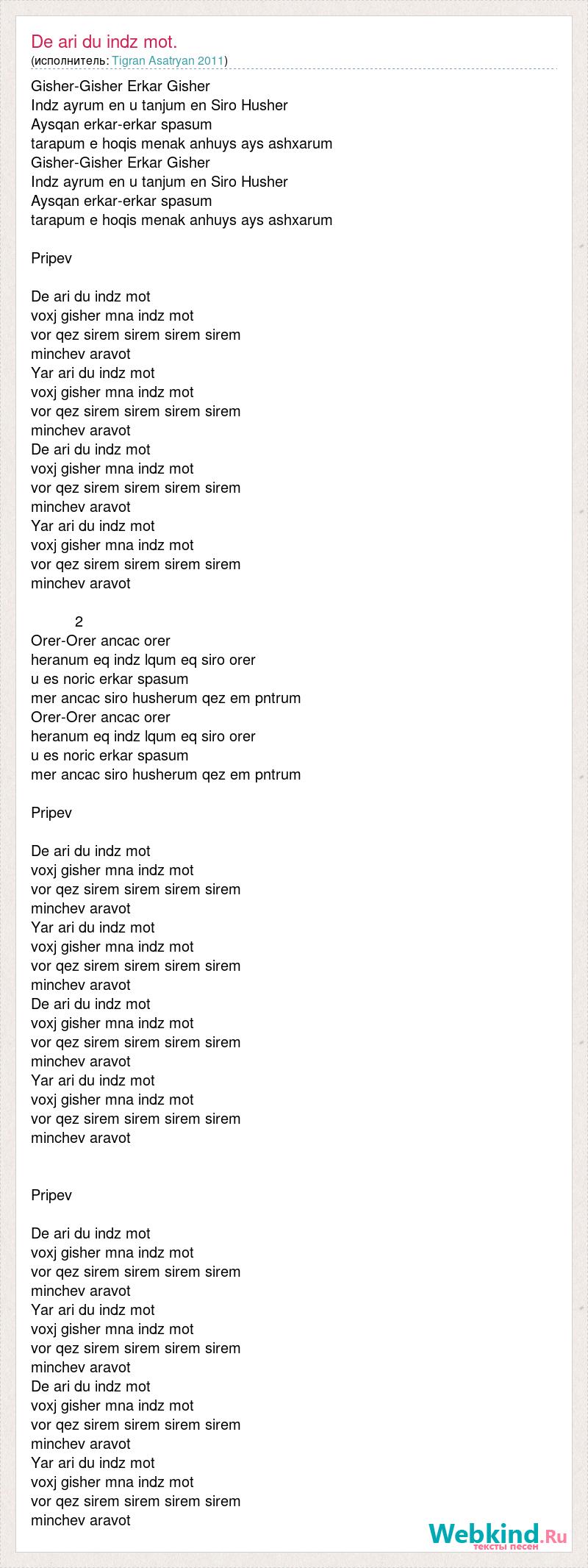 А как ты думаешь, о чем песня "De ari du indz mot." ?