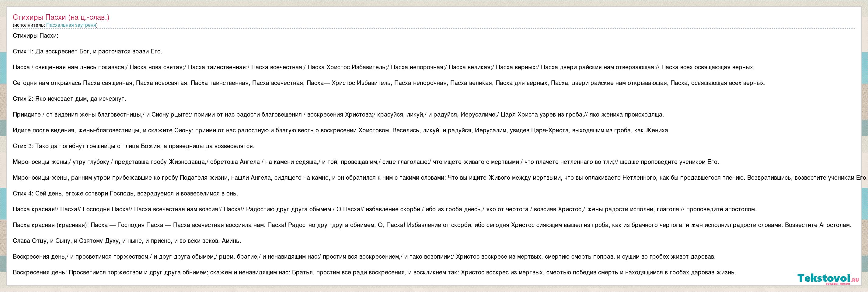 Стихиры Пасхи (на ц.-слав.)