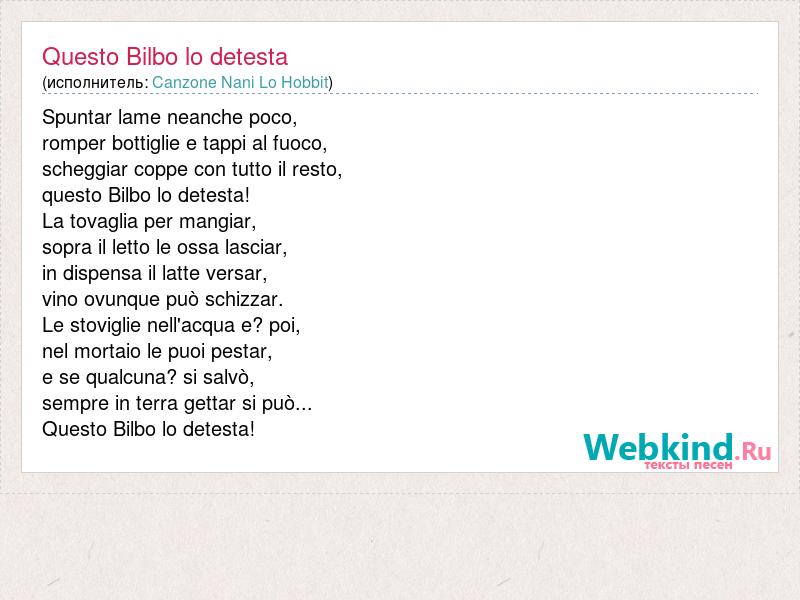 А как ты думаешь, о чем песня "Questo Bilbo lo detesta" ?