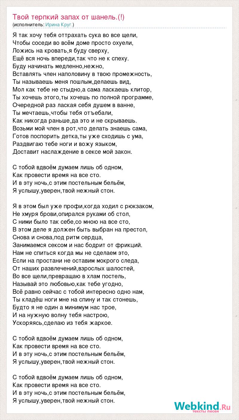 А как ты думаешь, о чем песня "Твой терпкий запах от шанель.(!)" ?