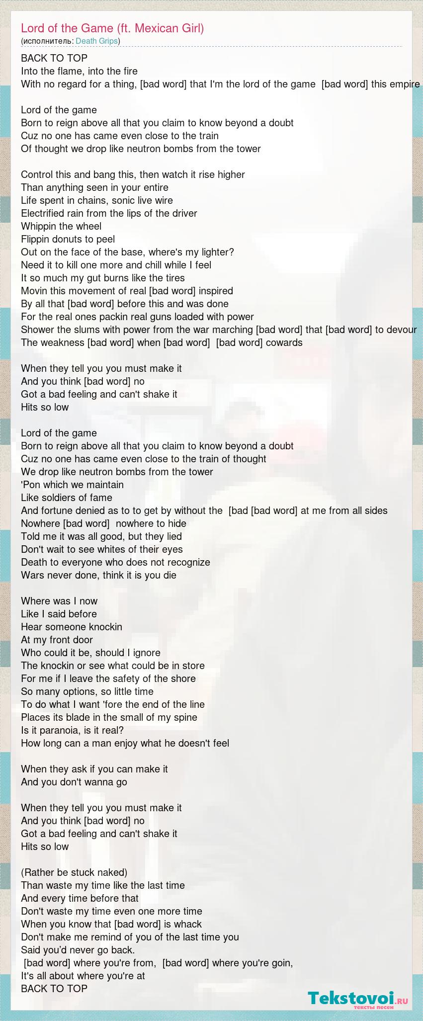 А как ты думаешь, о чем песня "Lord of the Game (ft. Mexican Girl)" ?