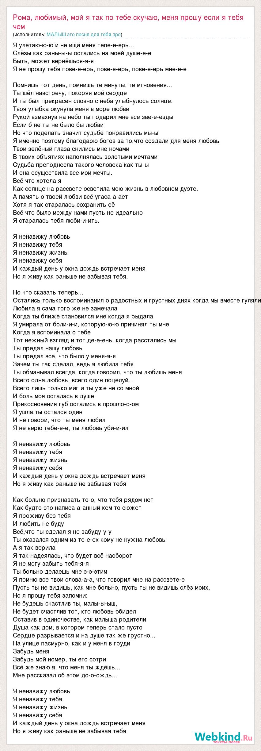 Главная→Исполнители→МАЛЫШ это песня для тебя,про→Рома, любимый, мой я так по тебе скучаю, меня прошу если я тебя чем