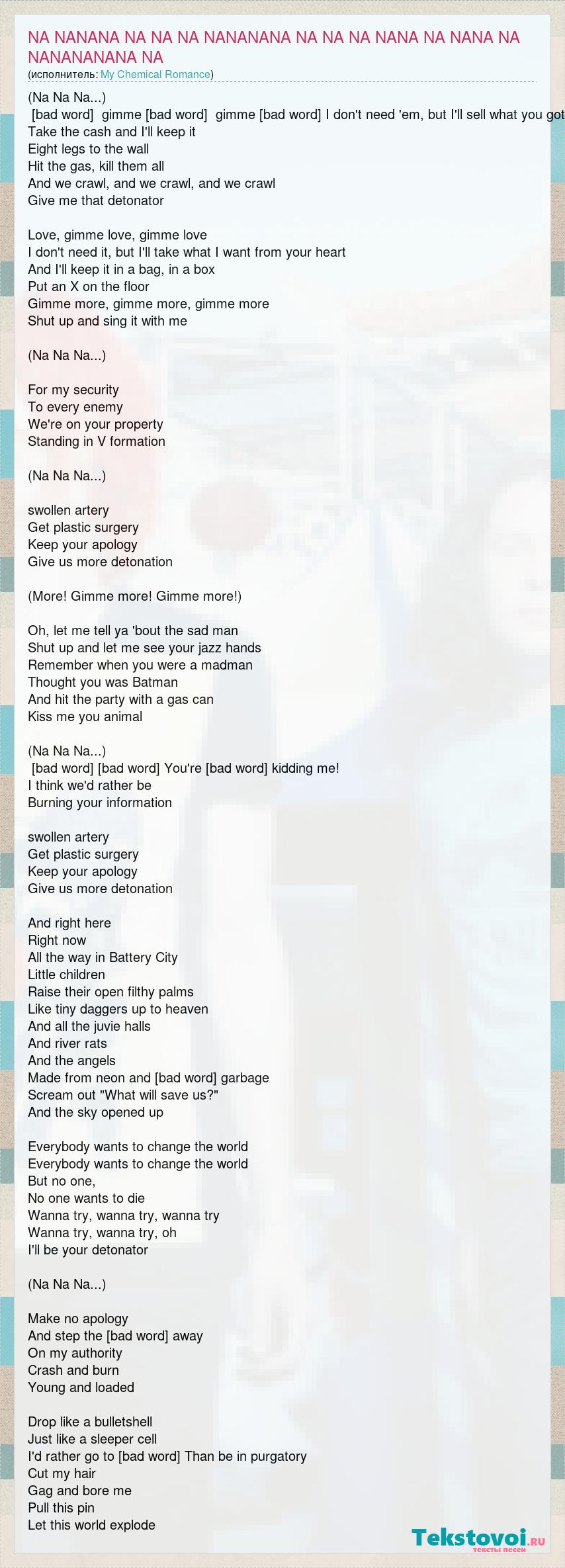 Главная→Исполнители→My Chemical Romance→NA NANANA NA NA NA NANANANA NA NA NA NANA NA NANA NA NANANANANA NA