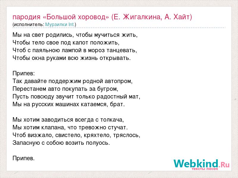 Пародия «Большой хоровод» (Е. Жигалкина, А. Хайт)