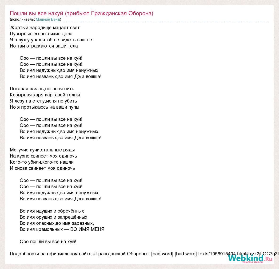 А как ты думаешь, о чем песня "Пошли вы все нахуй (трибьют Гражданская Оборона)" ?