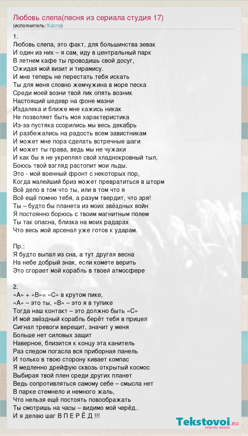 Любовь слепа(песня из сериала студия 17)
