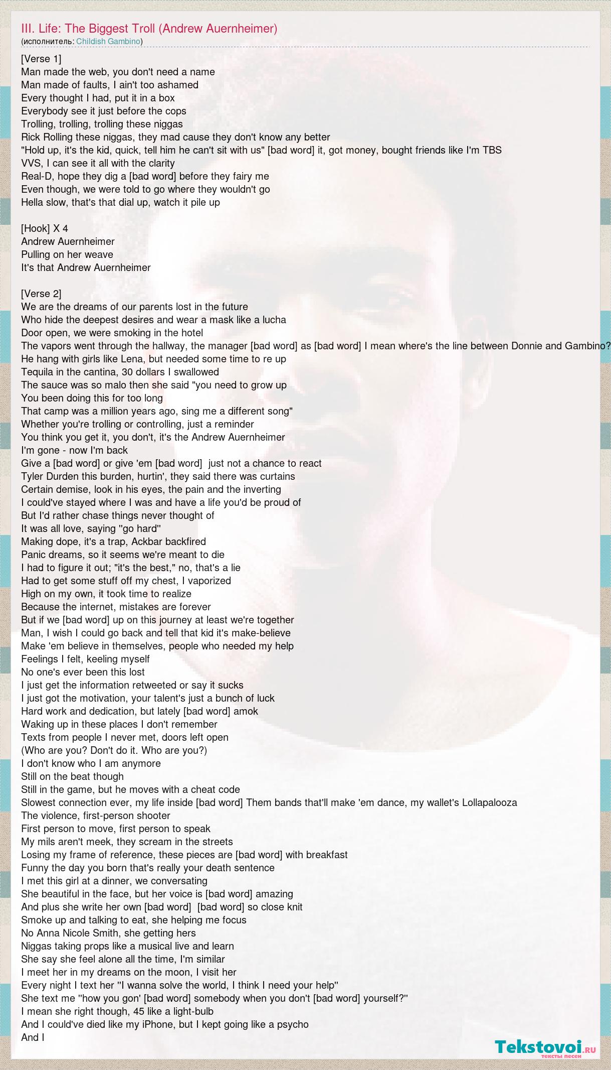 А как ты думаешь, о чем песня "III. Life: The Biggest Troll (Andrew Auernheimer)" ?