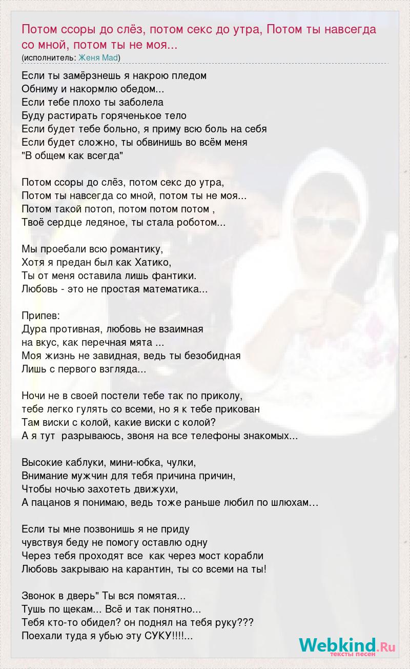 Главная→Исполнители→Женя Mad→Потом ссоры до слёз, потом секс до утра, Потом ты навсегда со мной, пот
