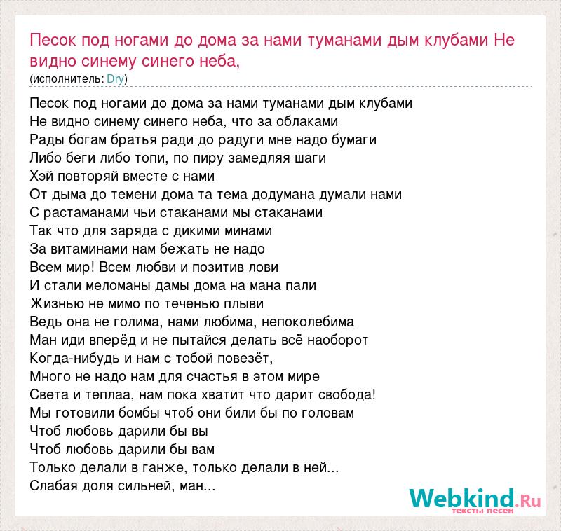 Песок под ногами до дома за нами туманами дым клубами Не видно синему синег
