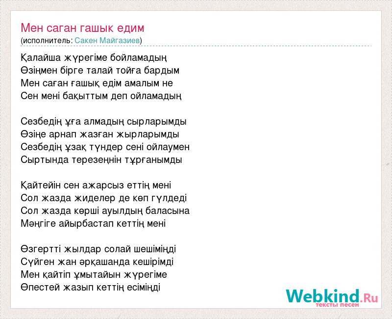 А как ты думаешь, о чем песня "Мен саган гашык едим" ?