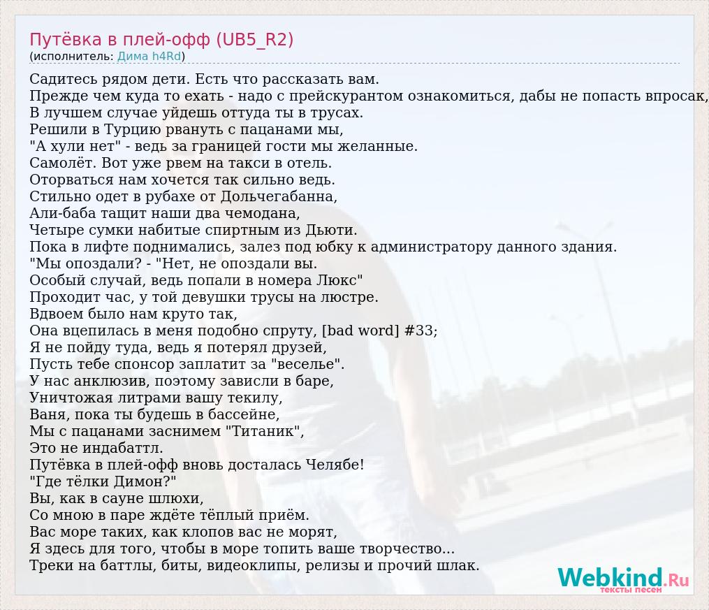 А как ты думаешь, о чем песня "Путёвка в плей-офф (UB5_R2)" ?