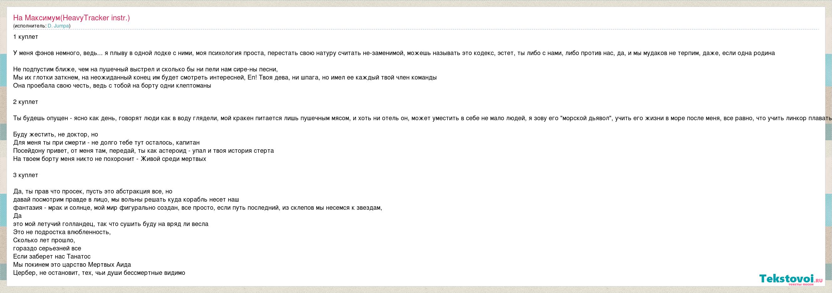 А как ты думаешь, о чем песня "На Максимум(HeavyTracker instr.)" ?