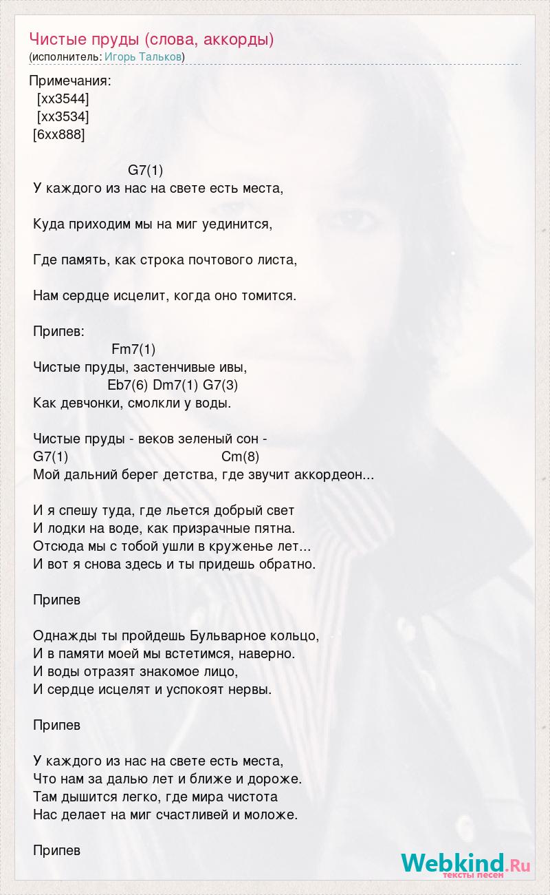 Чистые пруды (слова, аккорды)