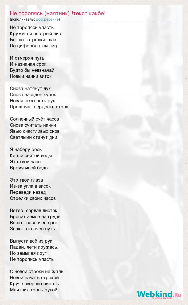 А как ты думаешь, о чем песня "Не торопясь (маятник) !текст какбе!" ?