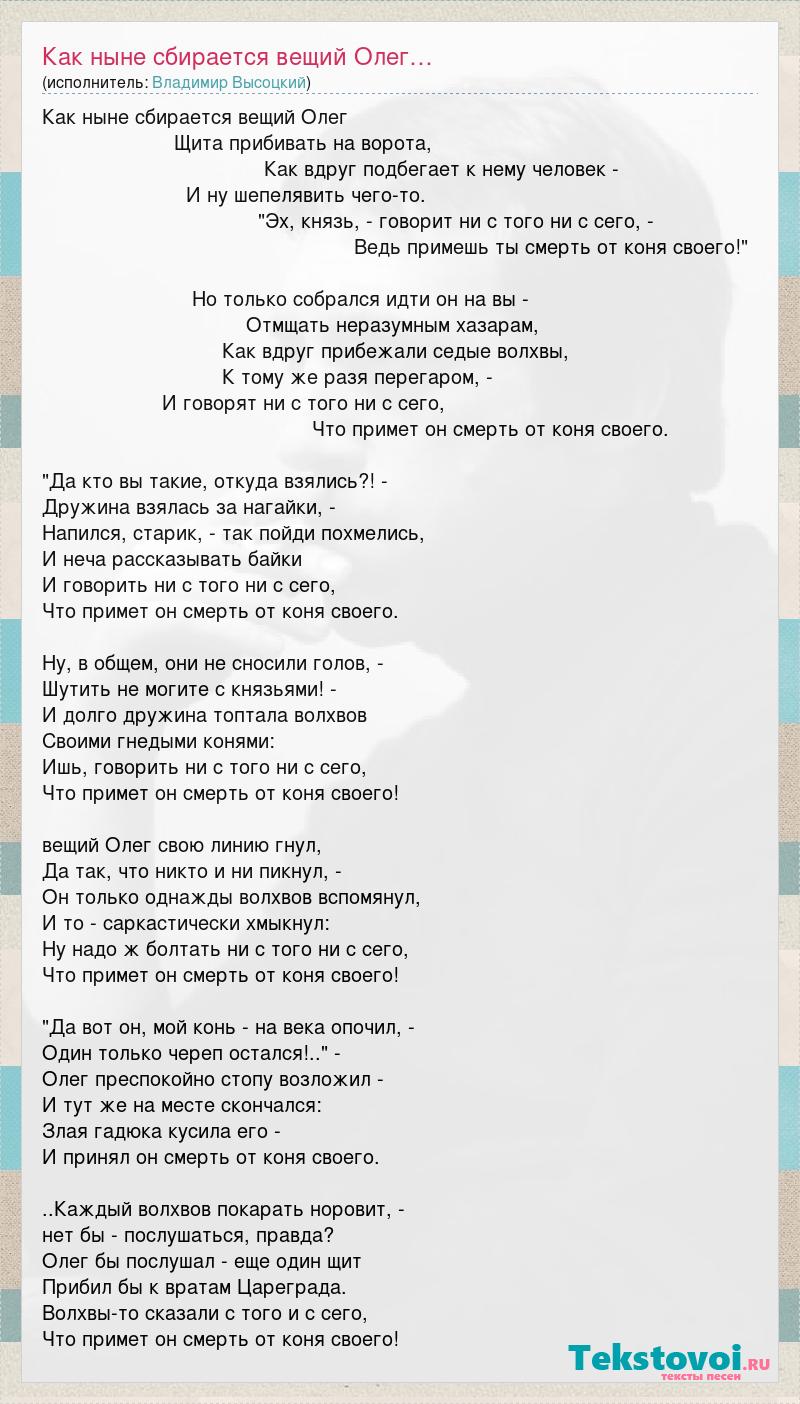 А как ты думаешь, о чем песня "Как ныне сбирается вещий Олег…" ?