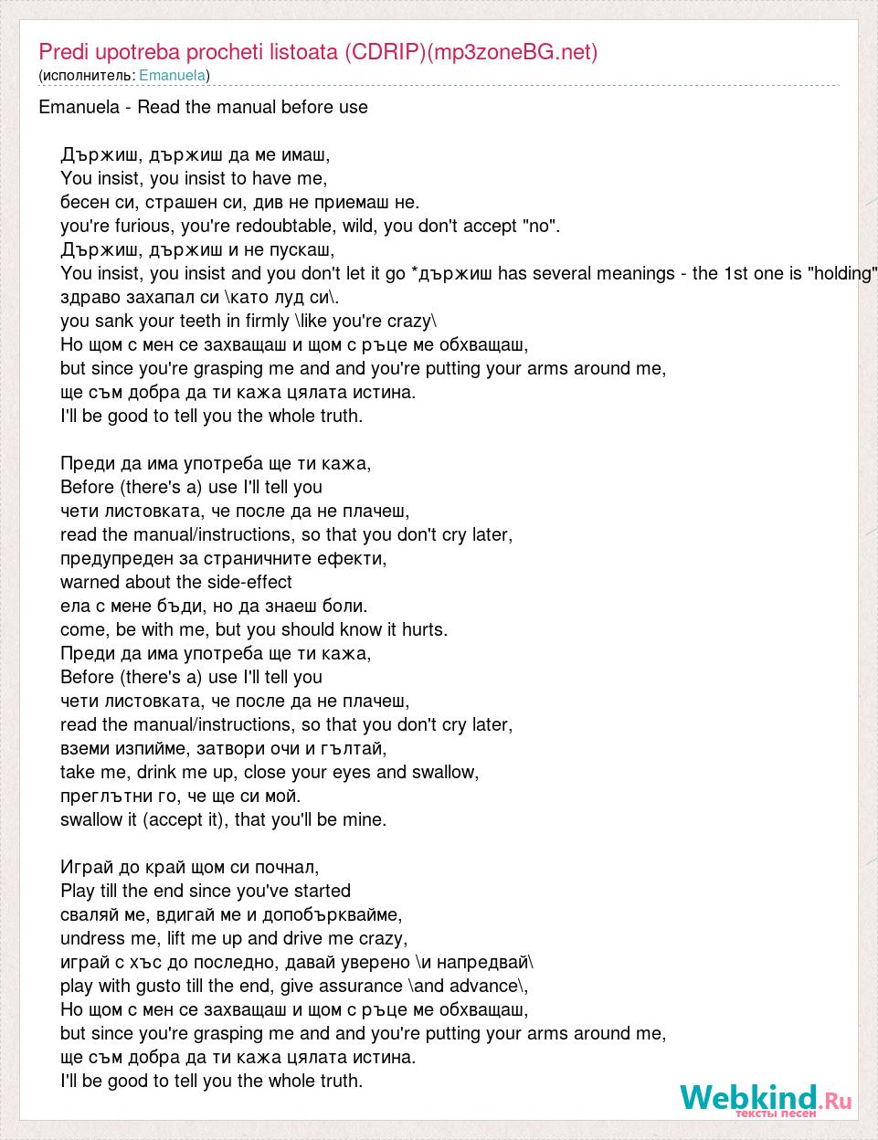А как ты думаешь, о чем песня "Predi upotreba procheti listoata (CDRIP)(mp3zoneBG.net)" ?