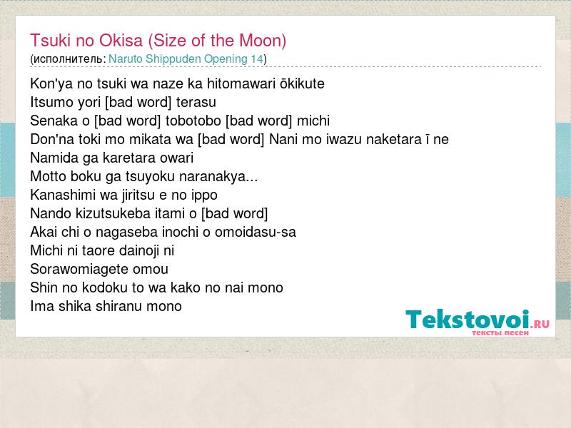 А как ты думаешь, о чем песня "Tsuki no Okisa (Size of the Moon)" ?