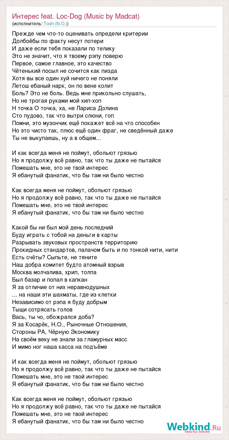 А как ты думаешь, о чем песня "Интерес feat. Loc-Dog (Music by Madcat)" ?