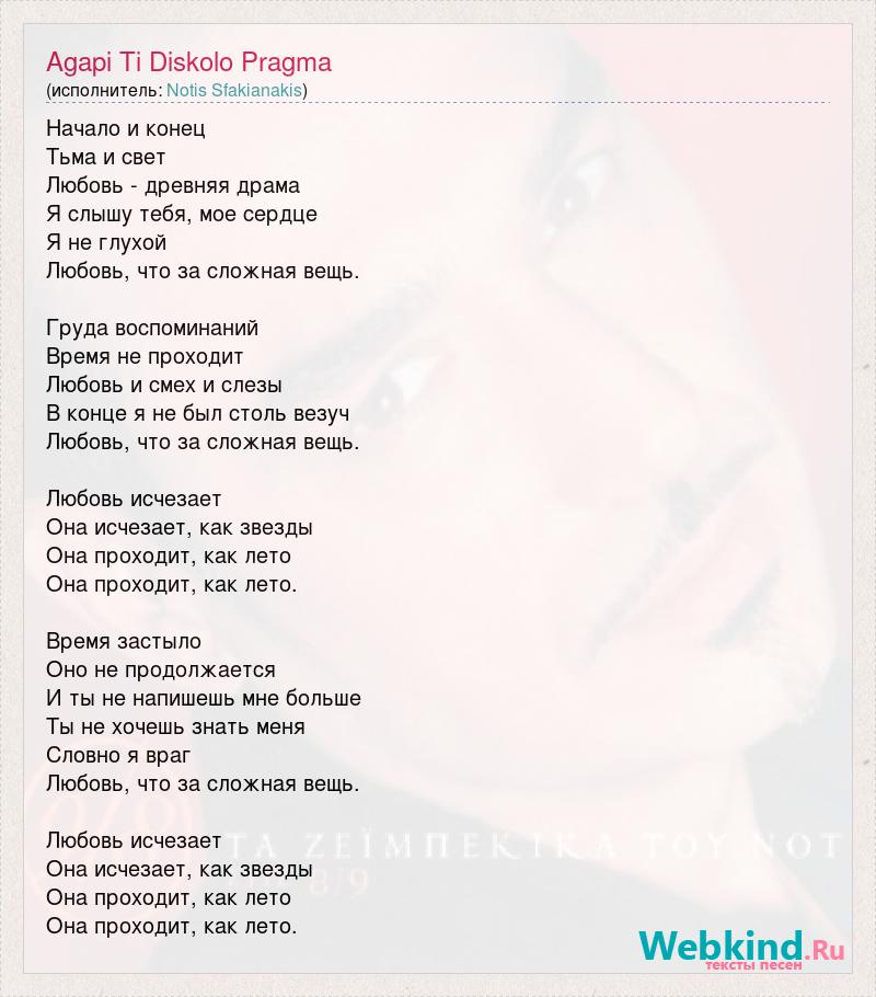 А как ты думаешь, о чем песня "Agapi Ti Diskolo Pragma" ?