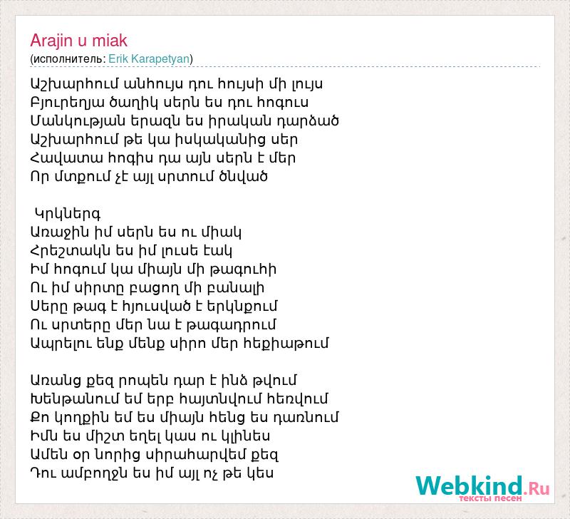 А как ты думаешь, о чем песня "Arajin u miak" ?