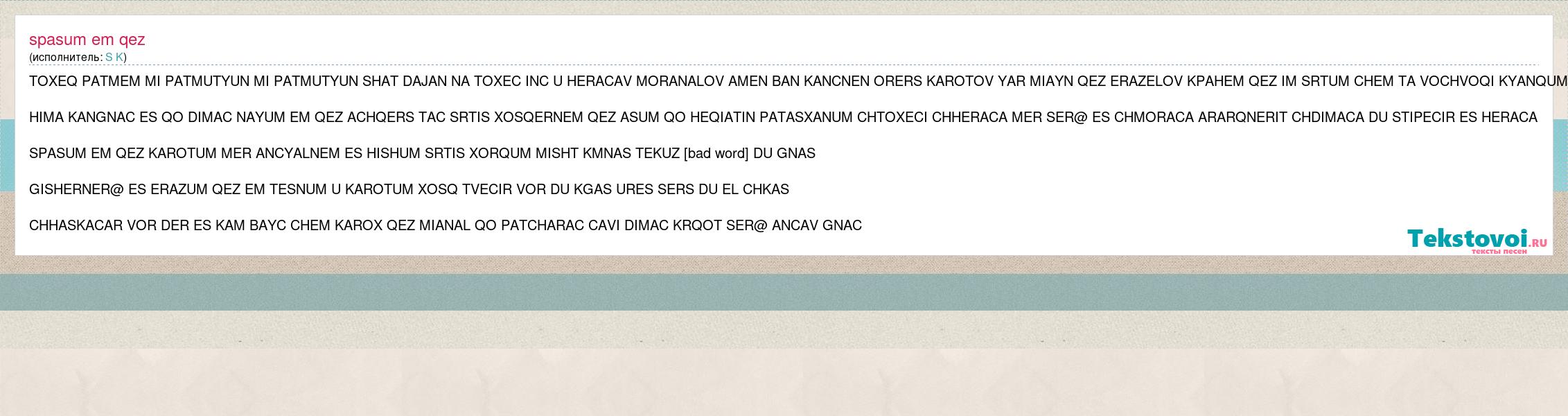 А как ты думаешь, о чем песня "Spasum em qez" ?