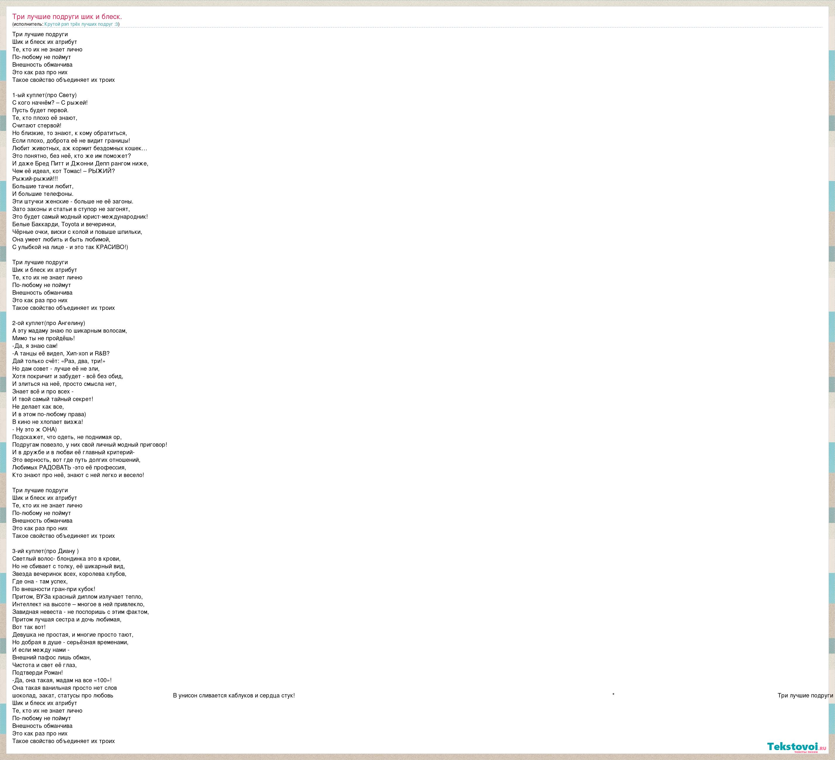 А как ты думаешь, о чем песня "Три лучшие подруги шик и блеск." ?