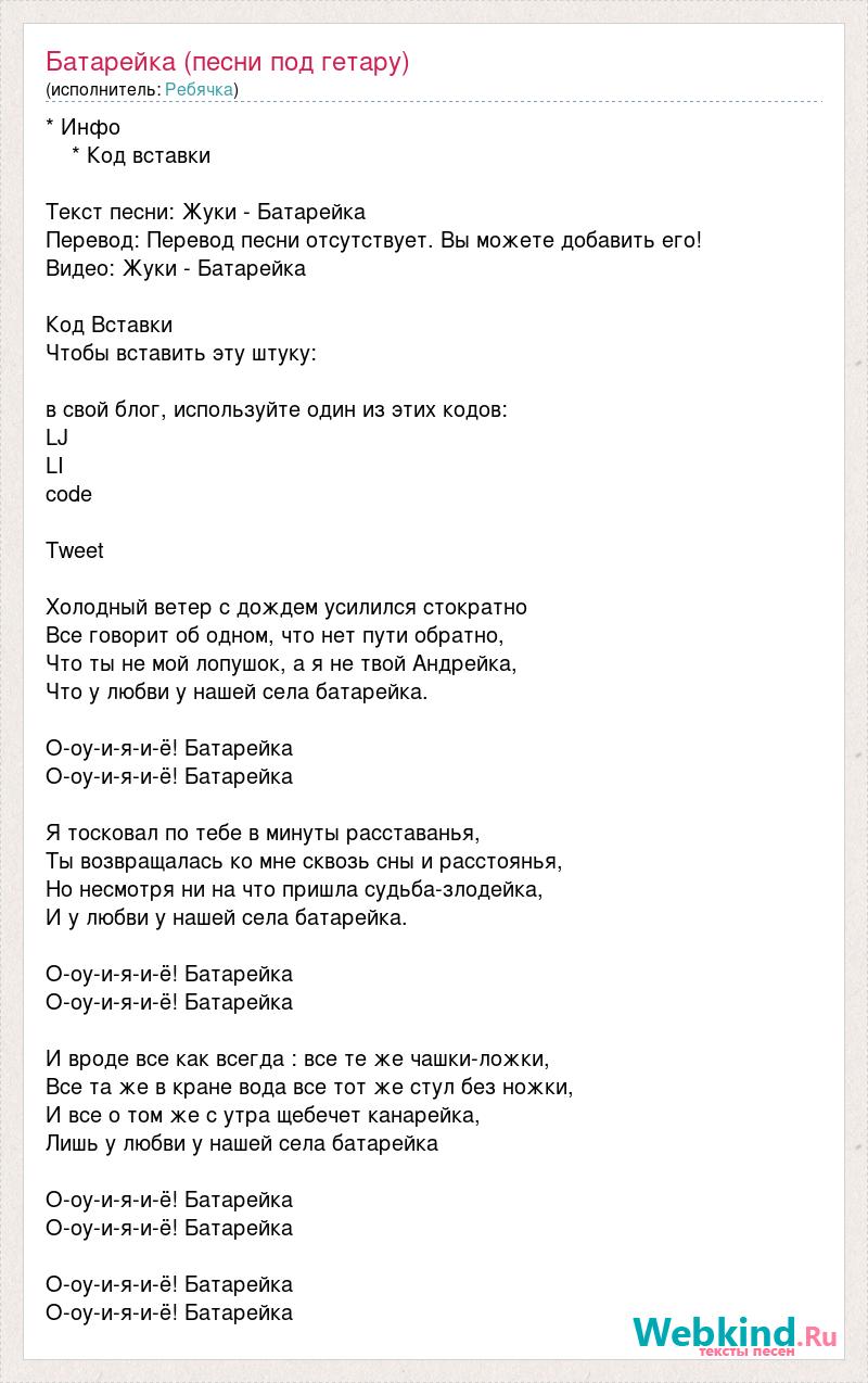 А как ты думаешь, о чем песня "Батарейка (песни под гетару)" ?
